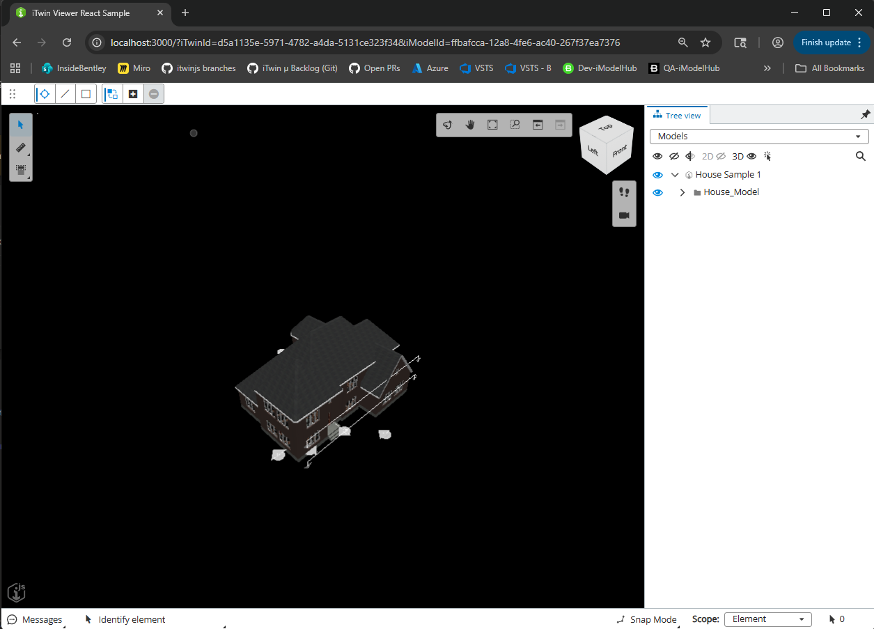 If all prerequisites are complete, your viewer should look similar to this when opening the House Model sample iModel.